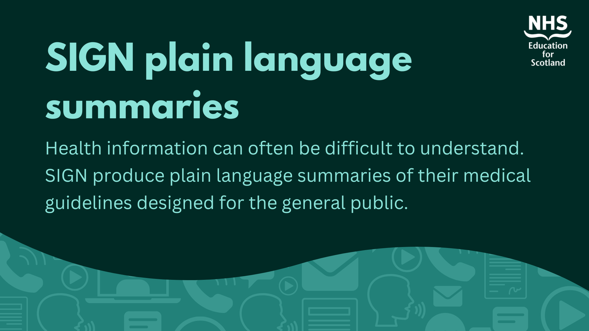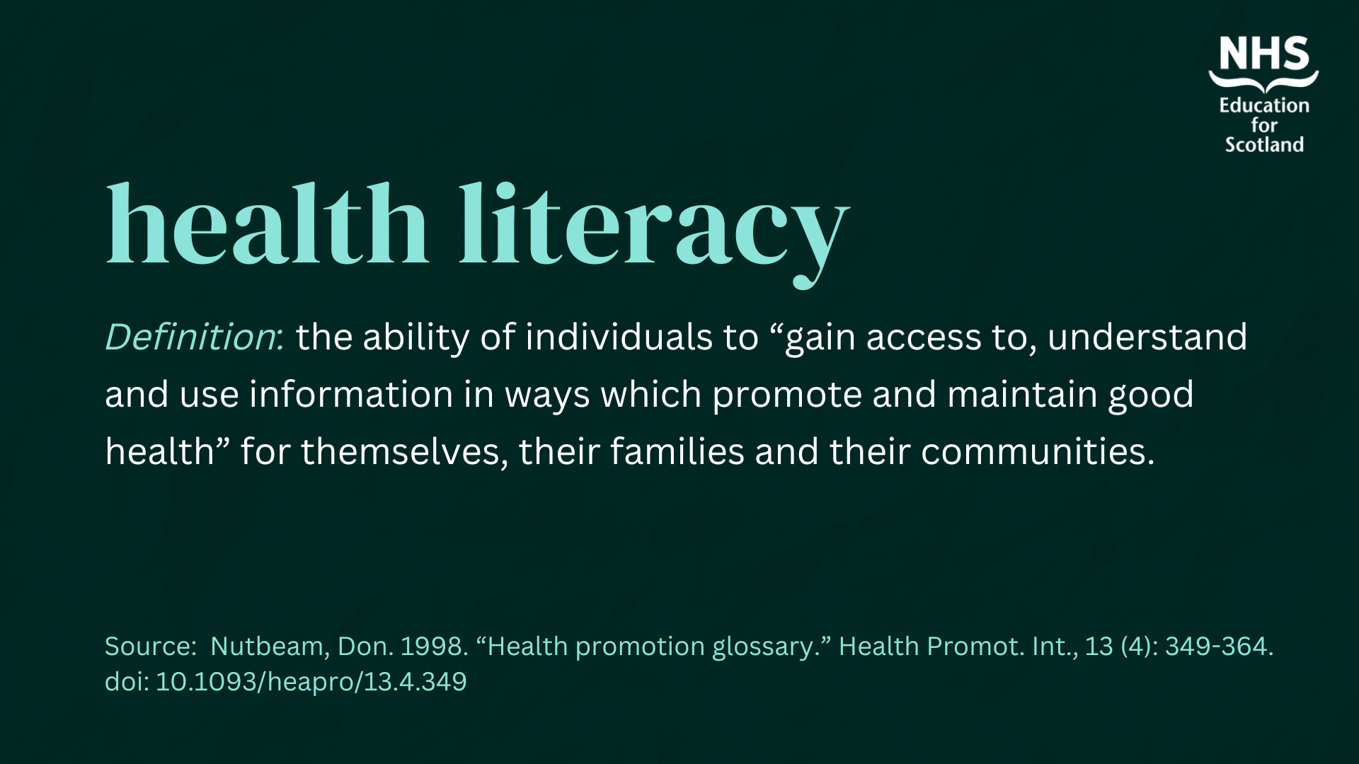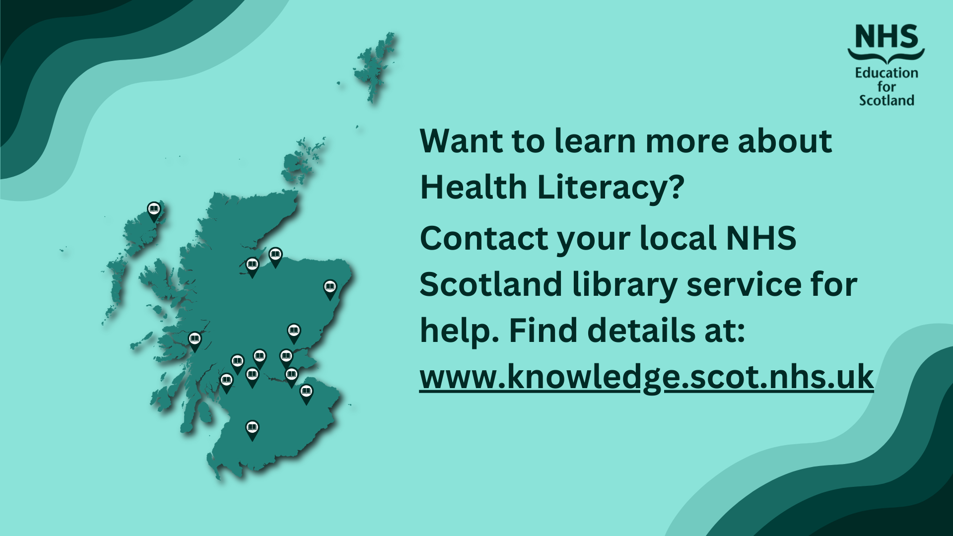 NHS Scotland Library and Knowledge Services offer resources and training to support health literacy for health and social care staff across Scotland.
